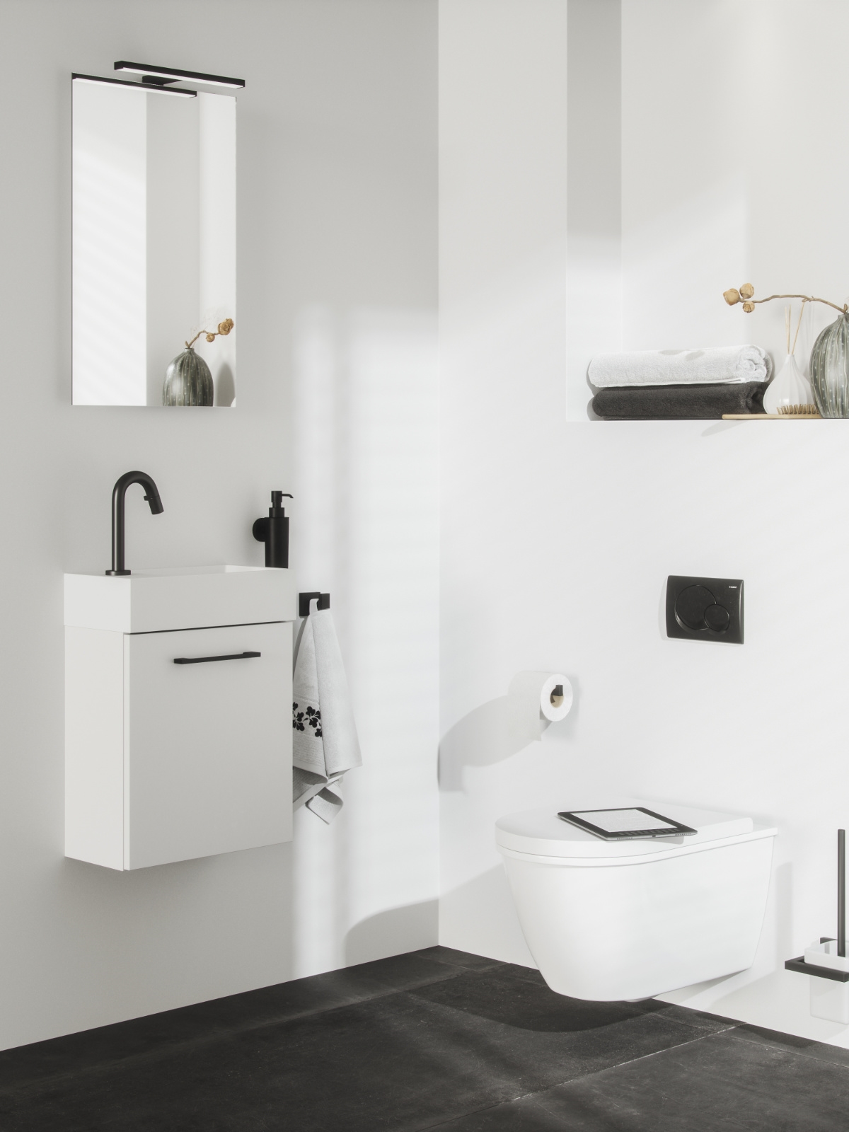 Primabad denkt auch an den kleinsten Raum im Haus. Unsere WC-Möbel finden durch ihre kompakte Ausführung in jeder Toilette Platz.