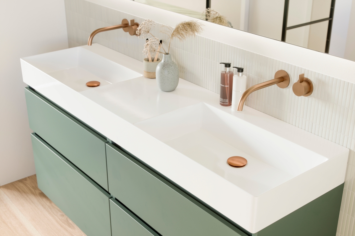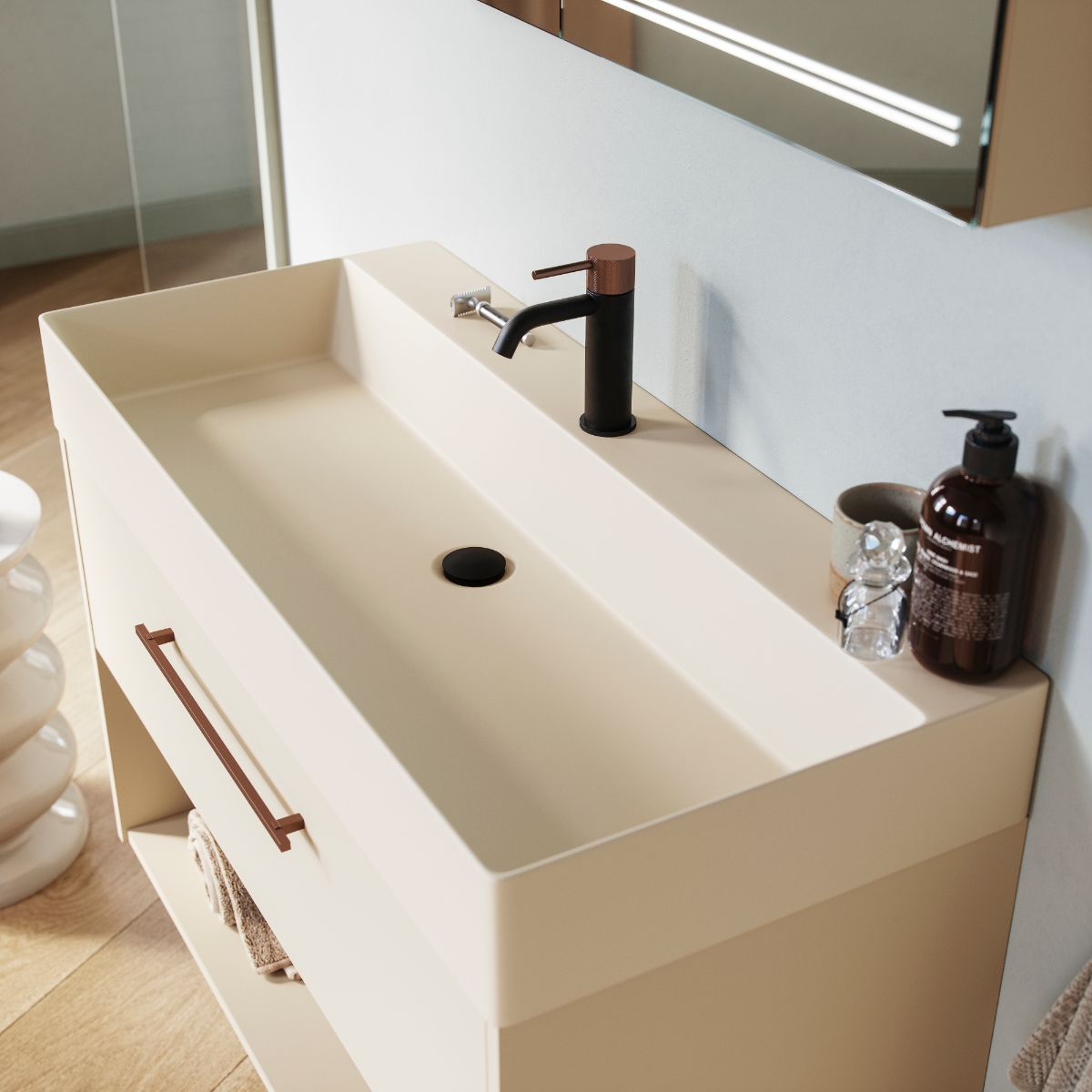 Robust in 10 Farben. Die Keramik-Waschtischplatte Blend ist eine Augenweide und zudem in 10 verschiedenen Farben erhältlich.
