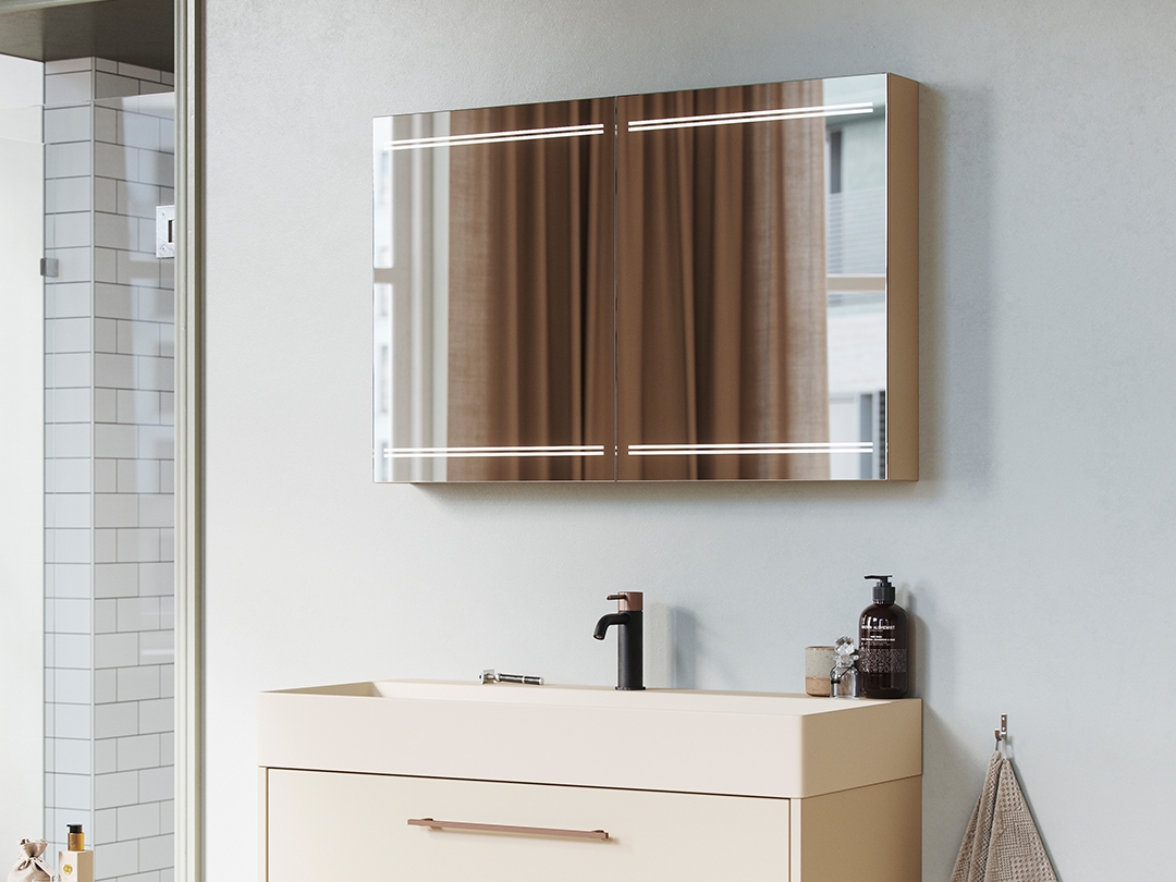 Unsere Kollektion besteht aus einem umfassenden Sortiment an Spiegeln und Spiegelschränken. Moderne Spiegelschränke mit doppelseitigen Spiegeltüren und optional mit verschiedenen Beleuchtungsmöglichkeiten ausgestattet. Spiegel in allen Formen und Größen. Von einfach und quadratisch bis rund und mit luxuriöser LED-Beleuchtung und Touch-Schalter ausgestattet.