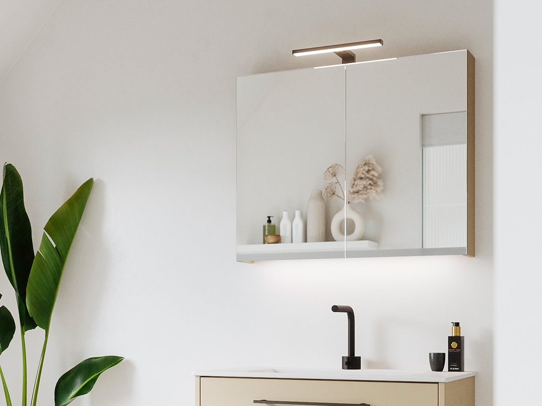 All unsere Spiegel und Spiegelschränke sind ausgerüstet mit integrierter LED-Beleuchtung oder mit Aufbauleuchte nach Wahl.