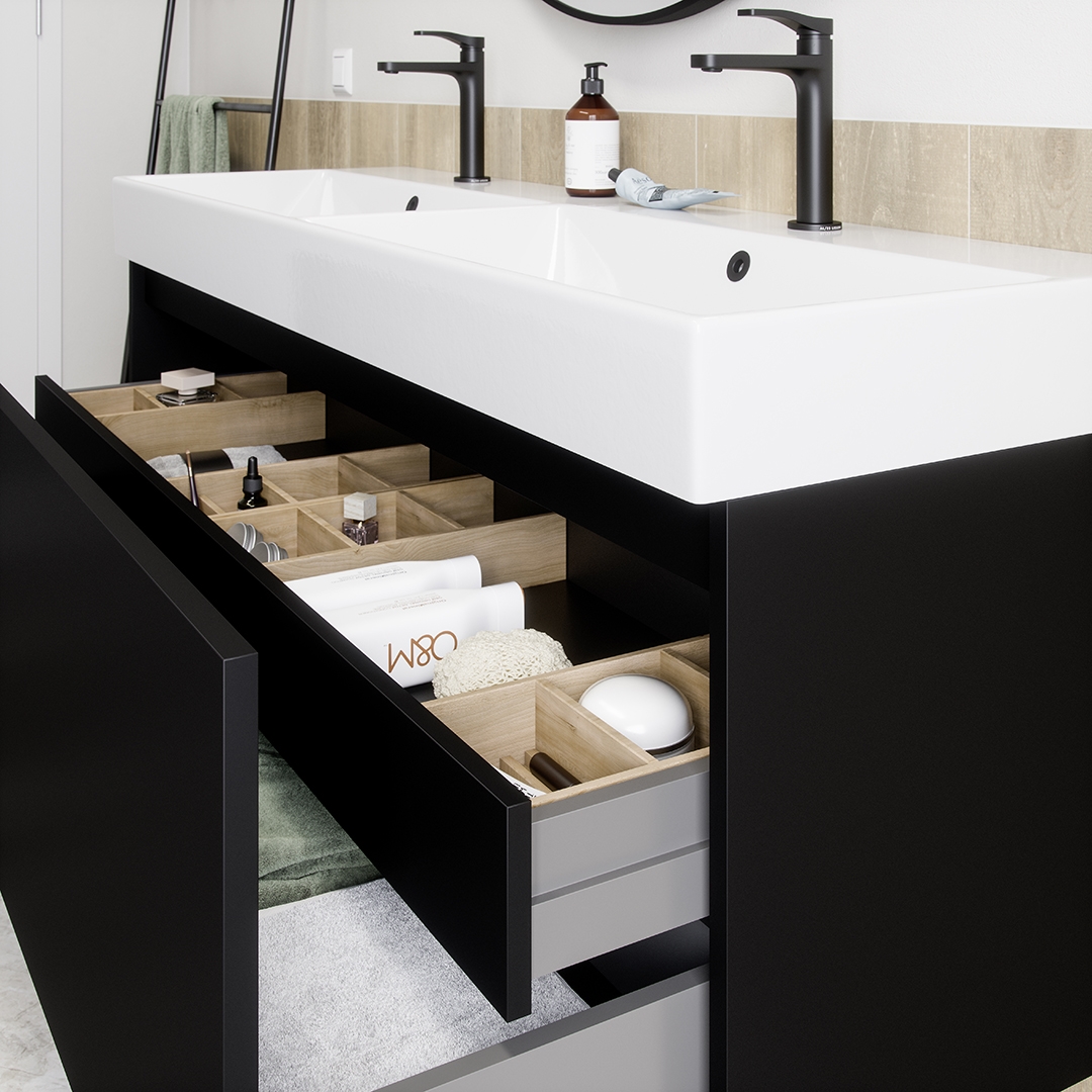Unser umfangreiches Sortiment an Griffen und Zubehör für Ihre Badmöbel. Hier finden Sie verschiedene Schubladenteiler, Handtuchhalter, Ablassstopfen und Griffe, um Ihre Möbel zu vervollständigen.