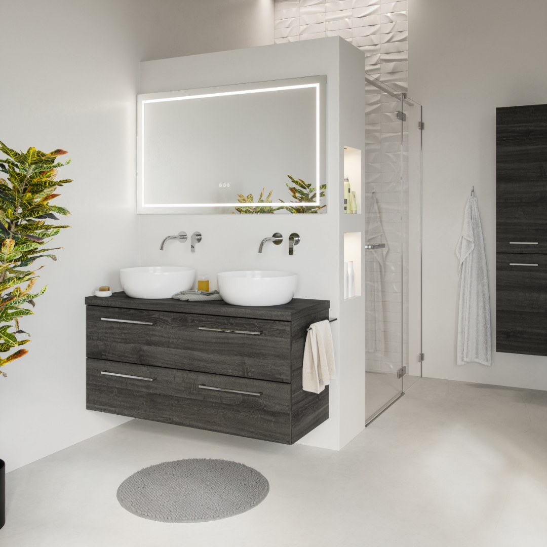 Die Designmöbel der Aufbau Edition sind preislich konkurrenzfähig und mit 1 oder 2 aufbaubecken aus Keramik ausgestattet.