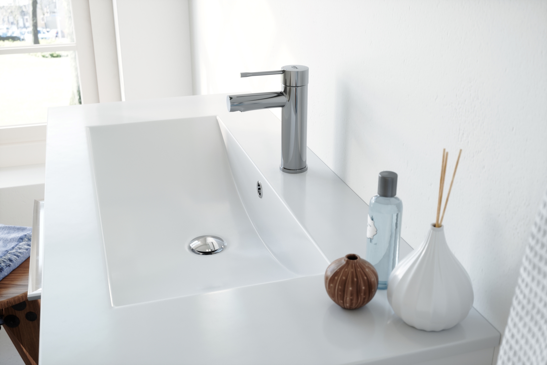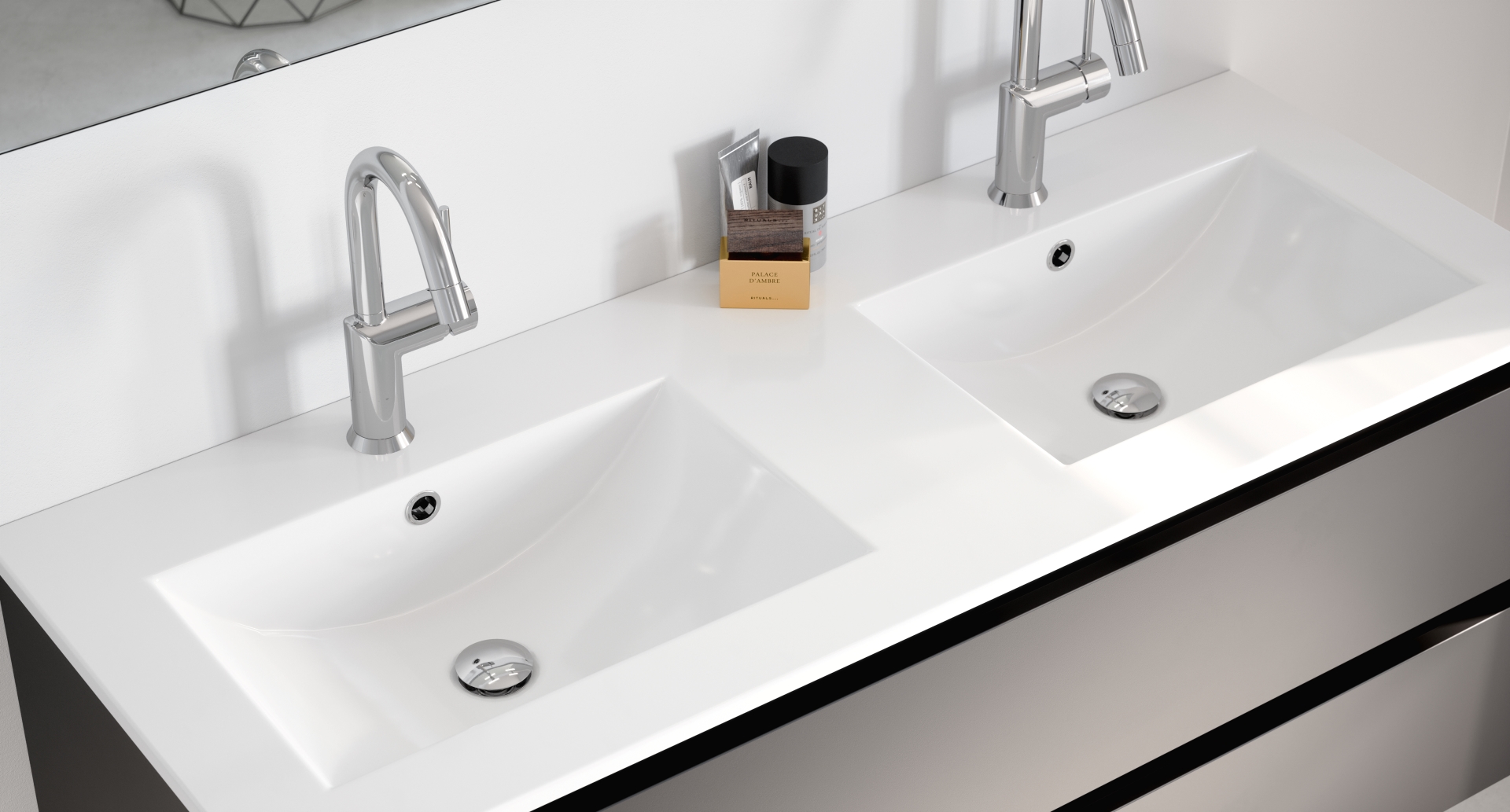 Die Designmöbel der Fifth Edition sind zu wettbewerbsfähigen Preisen erhältlich. Die schlichte Waschtischplatte aus Keramik ist mit einem halbrunden Waschbecken ausgestattet.