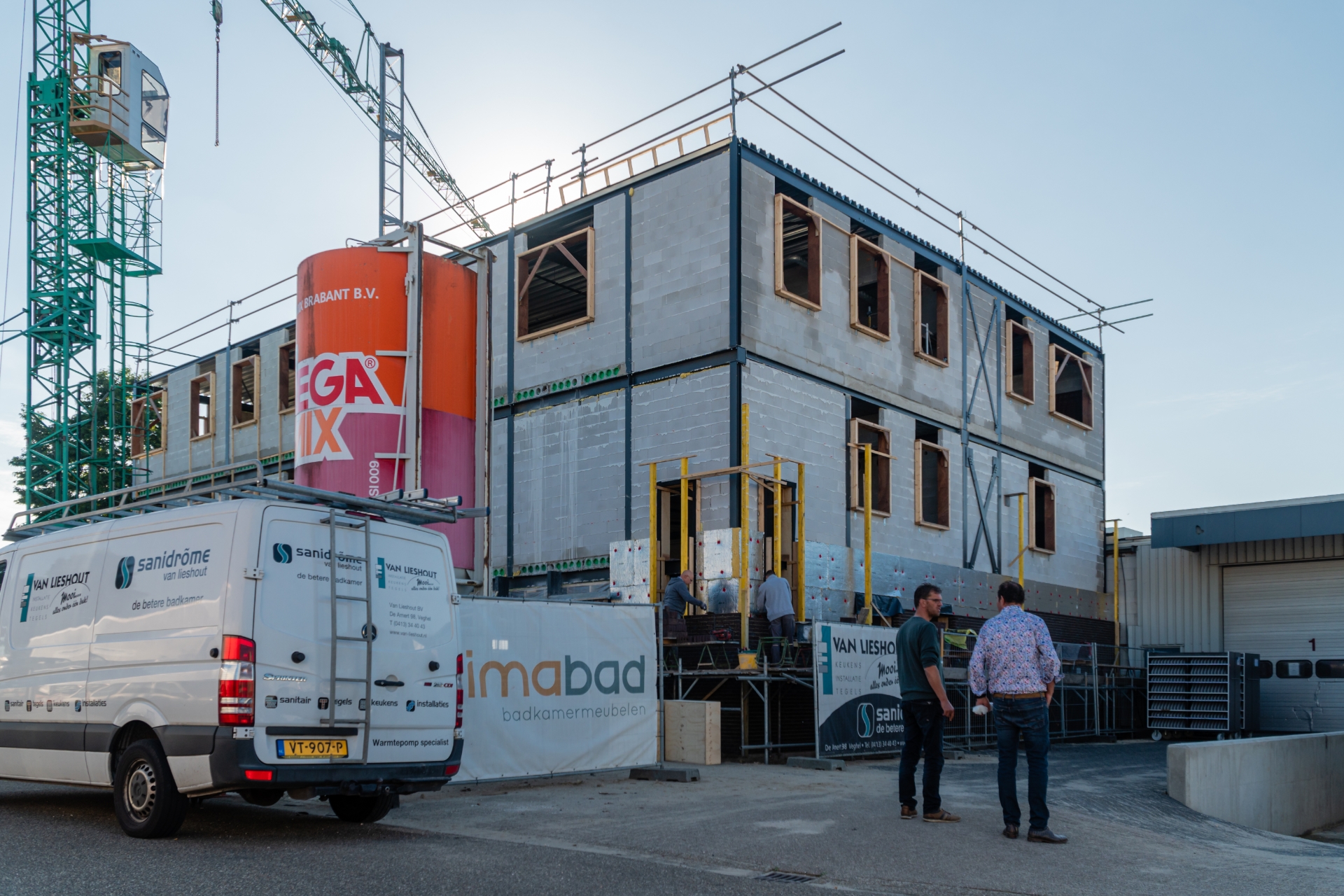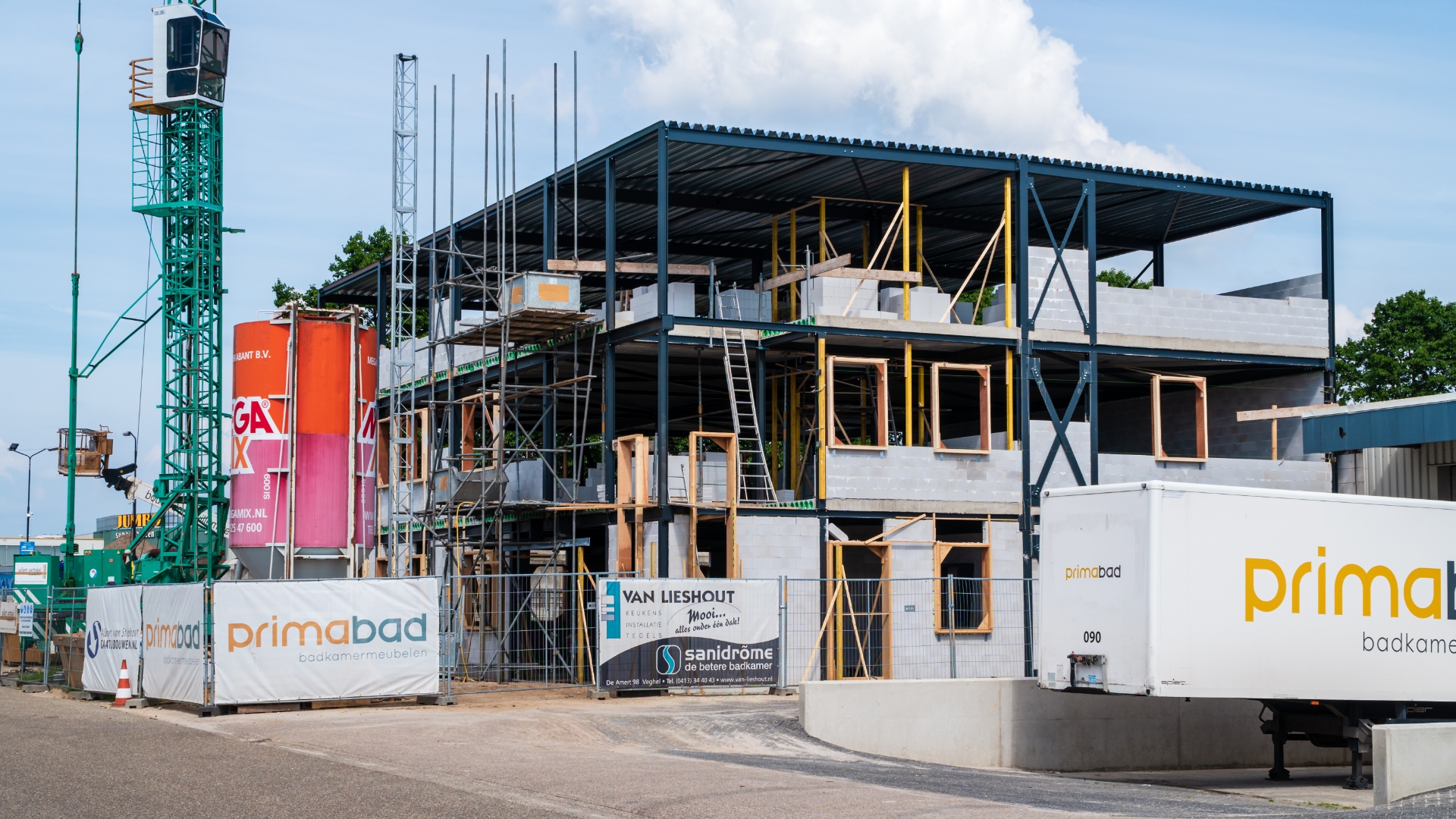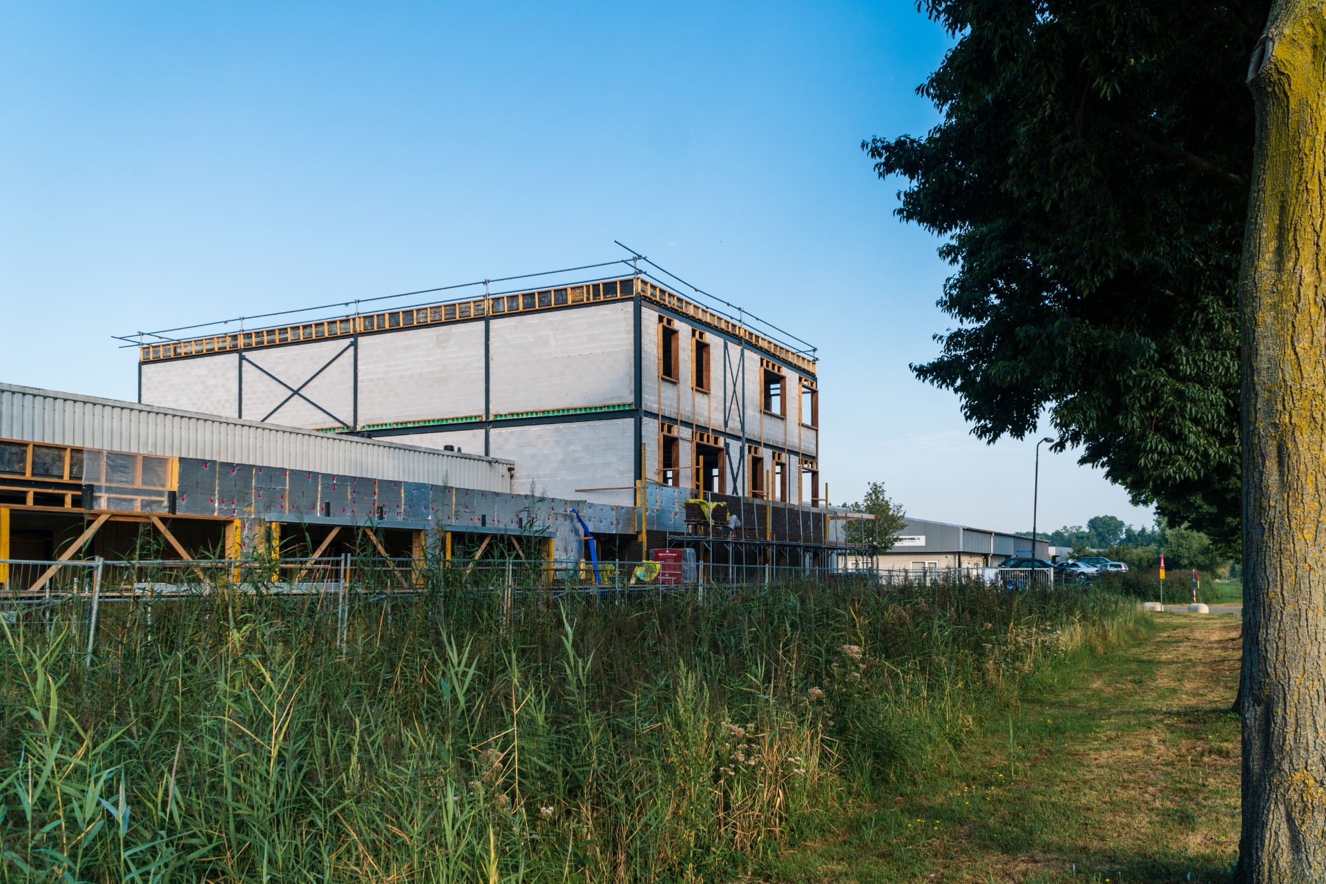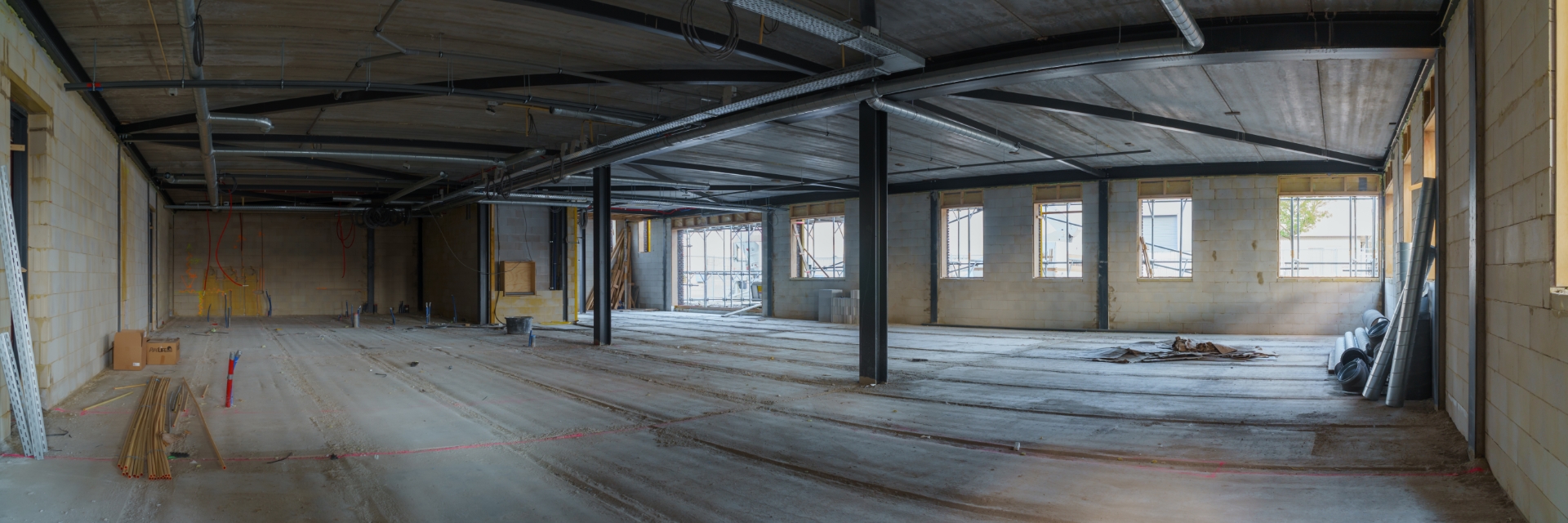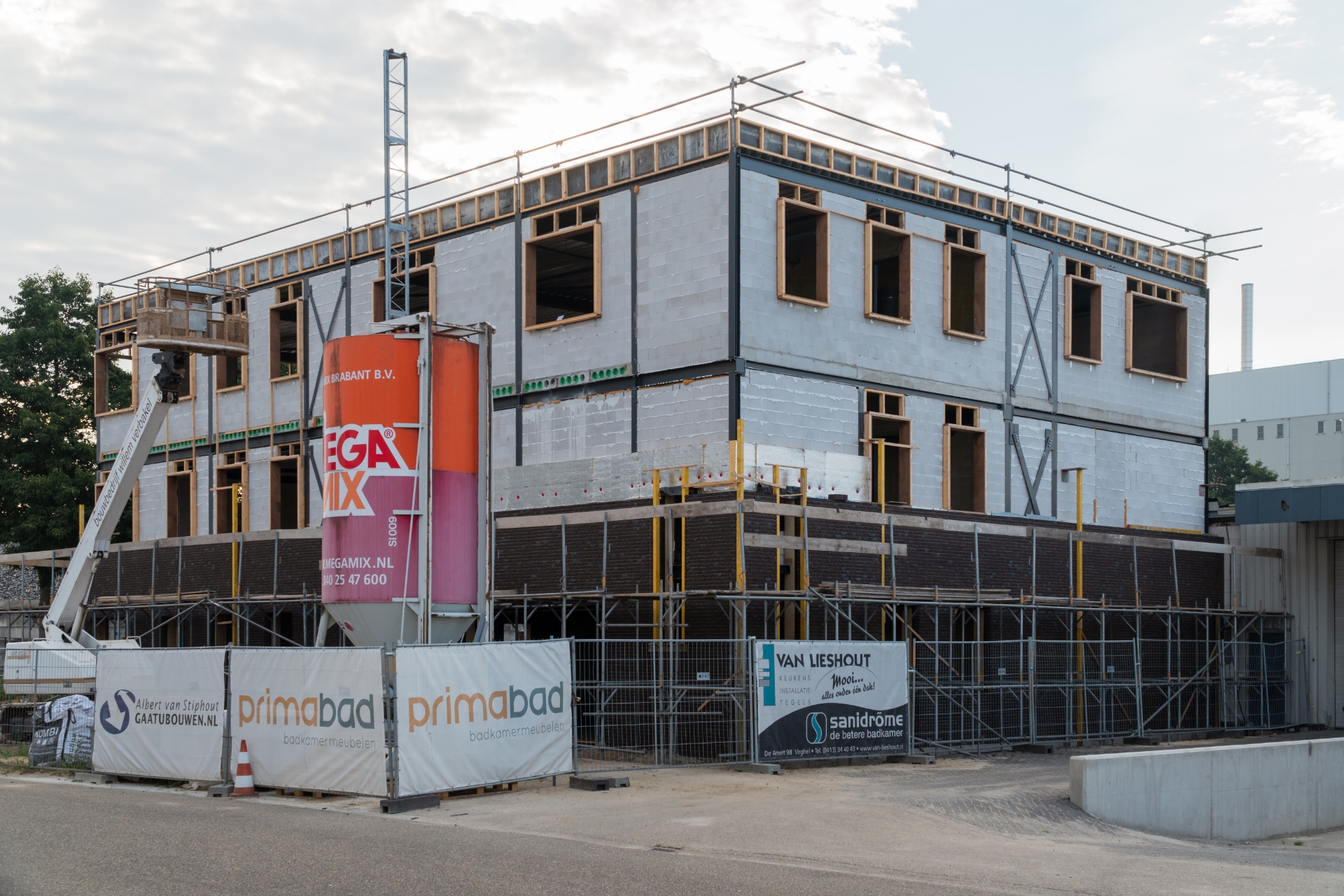 Auch das neue Bürogebäude wird stetig weitergeführt. Nach einem wohlverdienten Bau Urlaub wird wieder harte Arbeit geleistet und das dreistöckige Büro nimmt zunehmend Gestalt an. Zum Beispiel ist die Backsteinaußenwand fast fertig und es wird innen hart an allen Rohren, Elektrizität und Fußbodenheizung gearbeitet. In der Zwischenzeit wurden die Böden im 1. Und 2. Stock bereits gegossen.