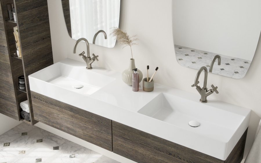 Donnerstag, 3. Februar 2022 - Die bekannten keramischen Waschtische aus der Serie Blend wird nun um eine 162-Zentimeter-Variante erweitert.