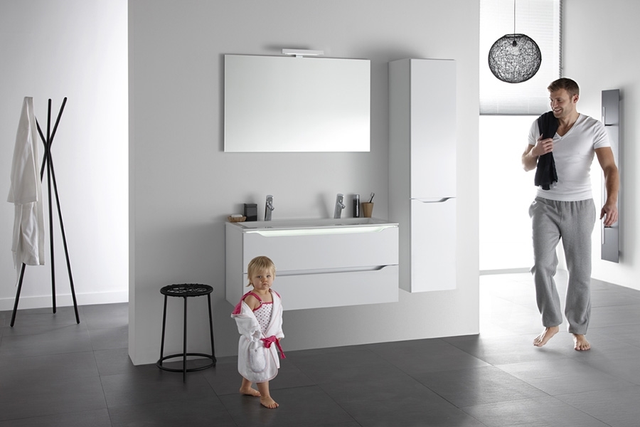 - Alle Spiegelschränke sind optional mit LED-Strahlern im Unterboden erhältlich.